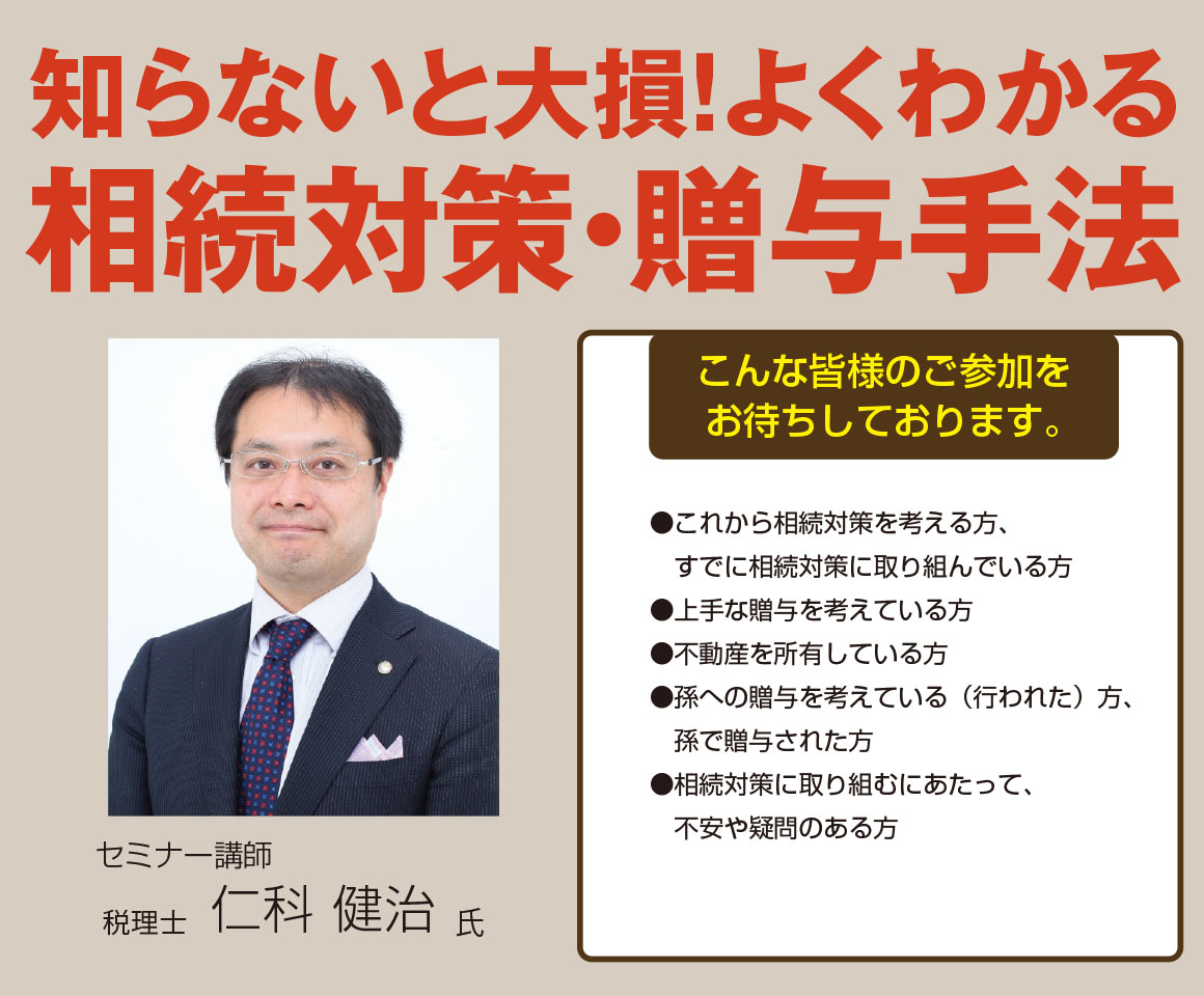 一般の方にとって相続や贈与の税制は複雑で落とし穴が多く、贈与も含め、安易な考えで相続対策に取り組むことは大変リスクが高いものです。複雑でわかりにくい税制やリスク、重要な情報をわかりやすくお伝えし、増税でもよりよい相続対策を考えて頂けるようなセミナーを開催します。